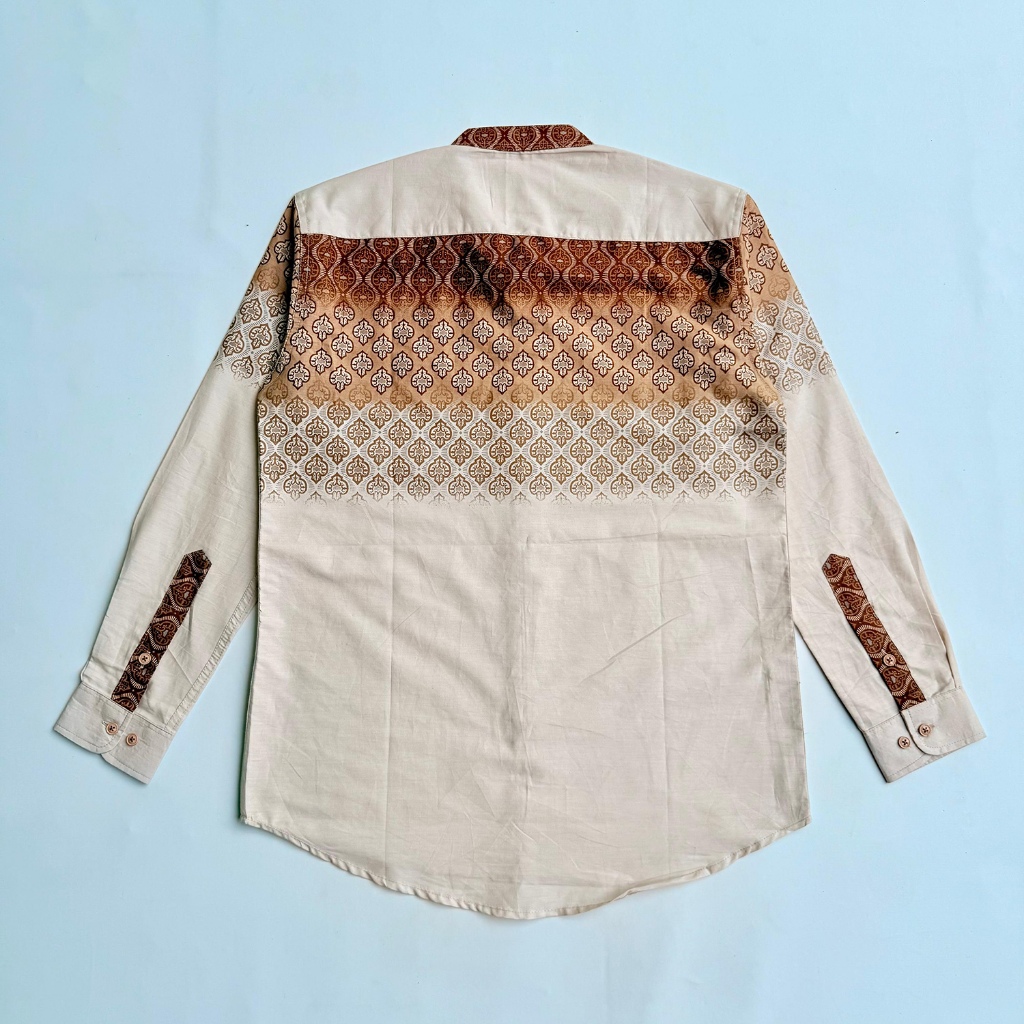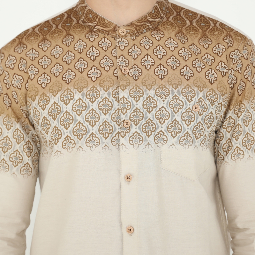 Vanfive Kemeja Koko Batik Shanghai Lengan Panjang Pria Slim Fit ZAFRAN - Beige