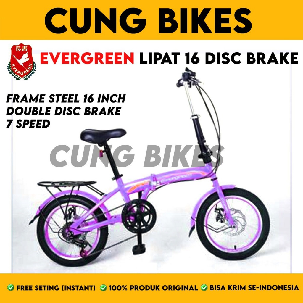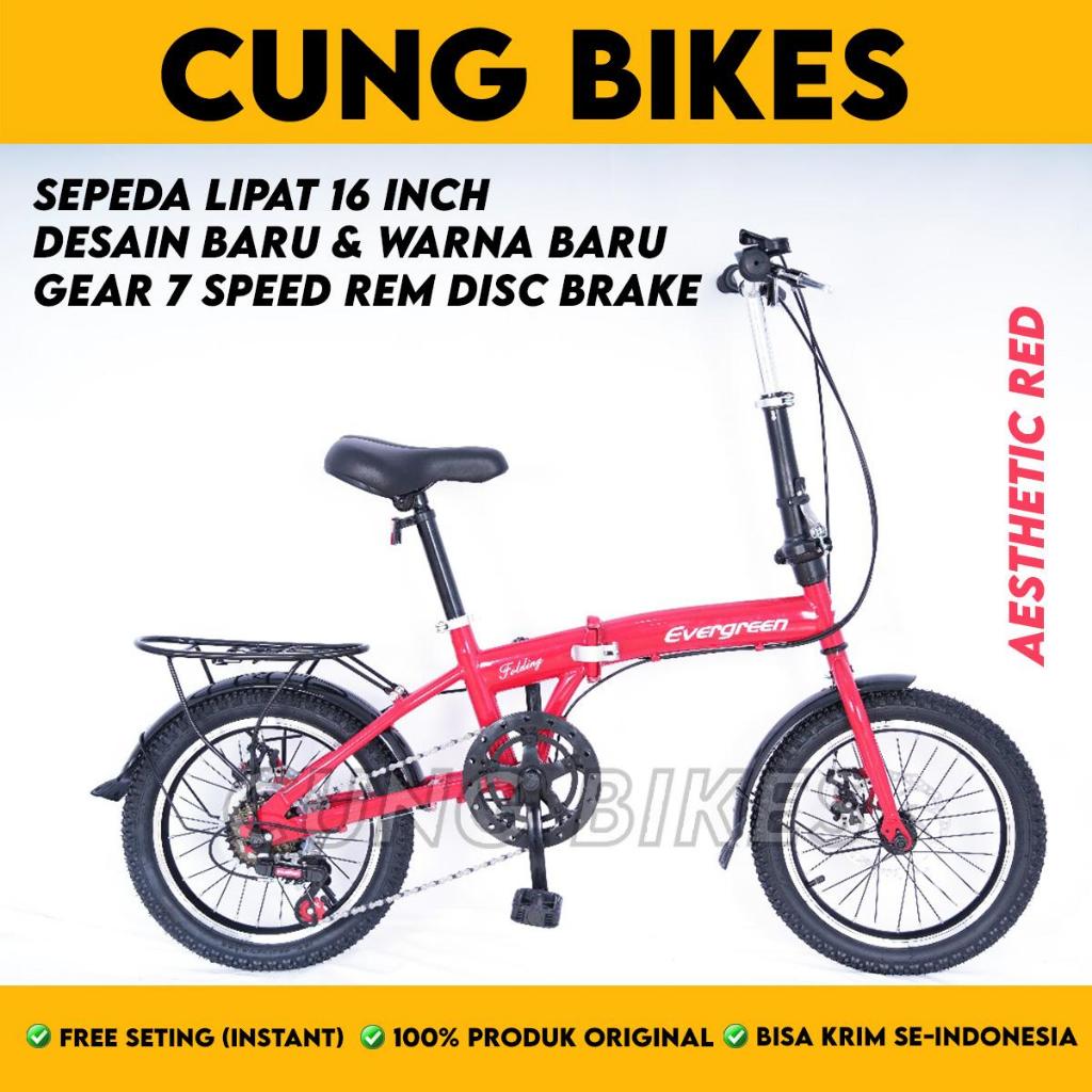 SEPEDA LIPAT ANAK UKURAN 16 MERK EVERGREEN 7 speed Disc Brake Cakram