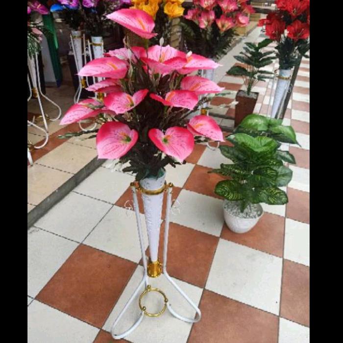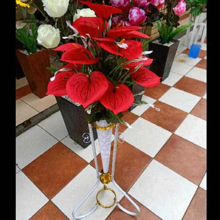 RANGKAIAN BUNGA ANTHURIUM LILLY ARTIFICIAL K18 DENGAN POT STANDING BESI DEKORASI - LILLY MERAH, 1SET+STANDING PUTIH