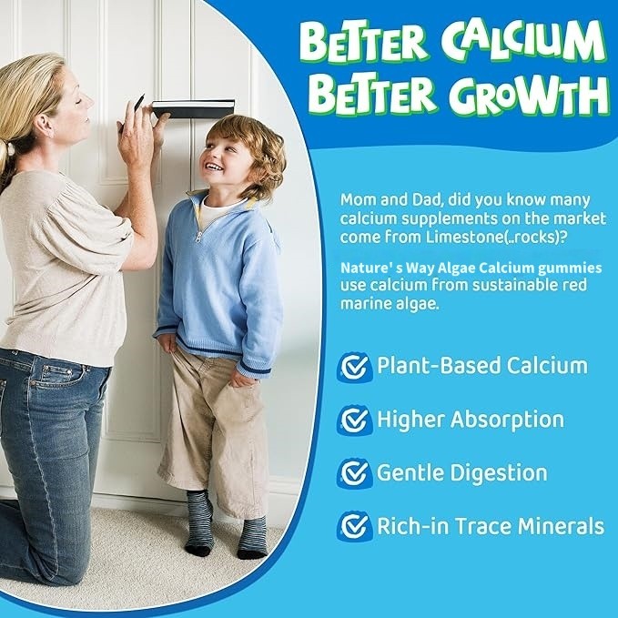 Nature'S Way Kids Calcium Gummies High Absorption Algae Calcium For Better Bone Growth & Development 60 Pcs Kids Calcium