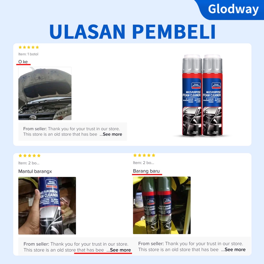 Diskon Glodway Motor Care Mobil Rumah Interior Multi Purpose Sikat Pembersih Busa Agent 650ml Dengan Kuas Car Dala
