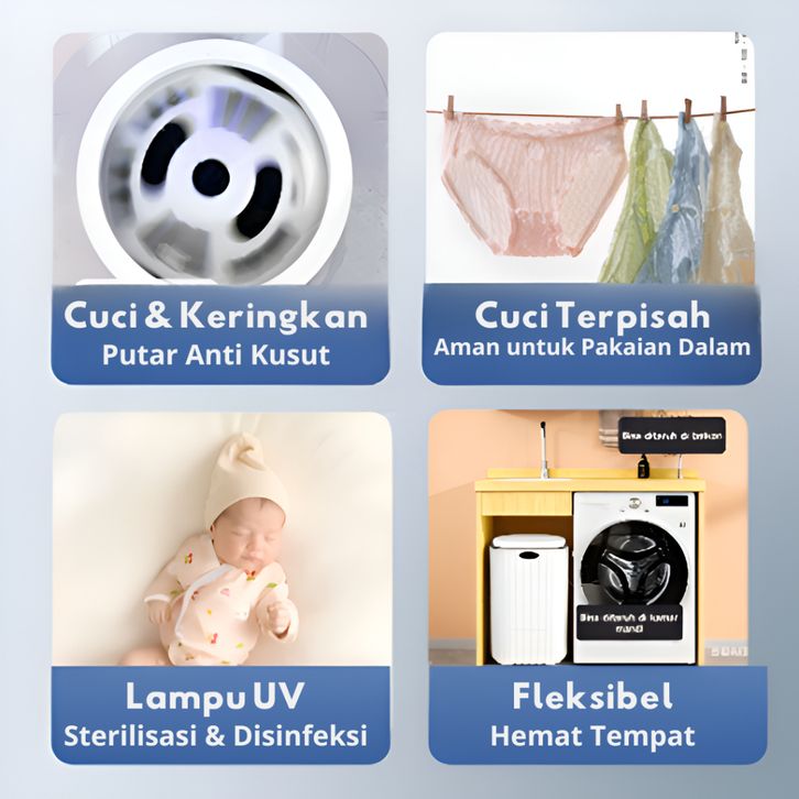 Mesin Cuci Mini Roman Portable Kapasitas 3,5kg Cuci Terpisah Pakaian Bayi Pakaian Dalam