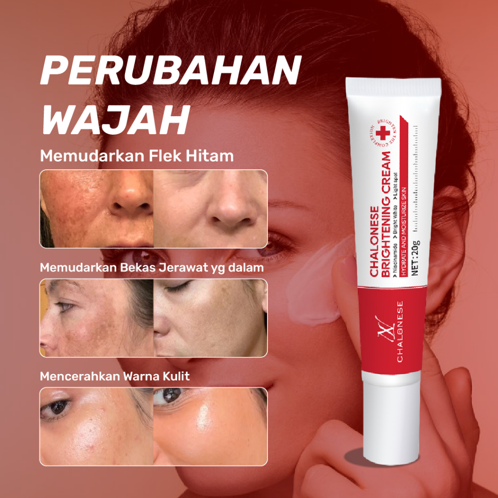 CHALONESE] BRIGHTENING DAN WHITENING CREAM 20Gr Membantu Memudarkan Flex dan Bintik Hitam di Wajah dan Membuat Wajah Lebih Cerah BPOM