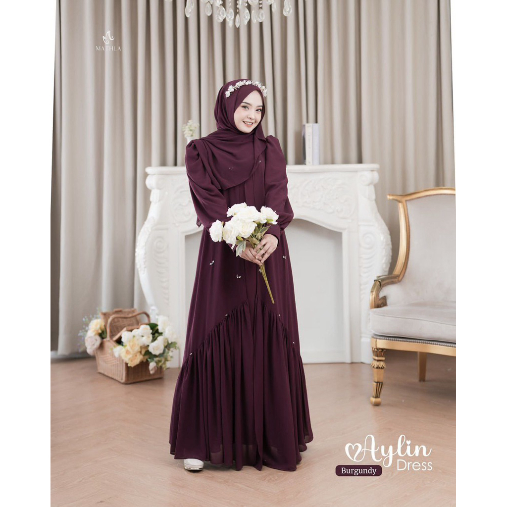 Aylin Abaya Dress Wanita Ceruty Babydoll Mix Payet Laura Gamis Lebaran Terbaru 2026 Elegan Muslimah