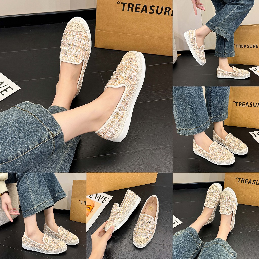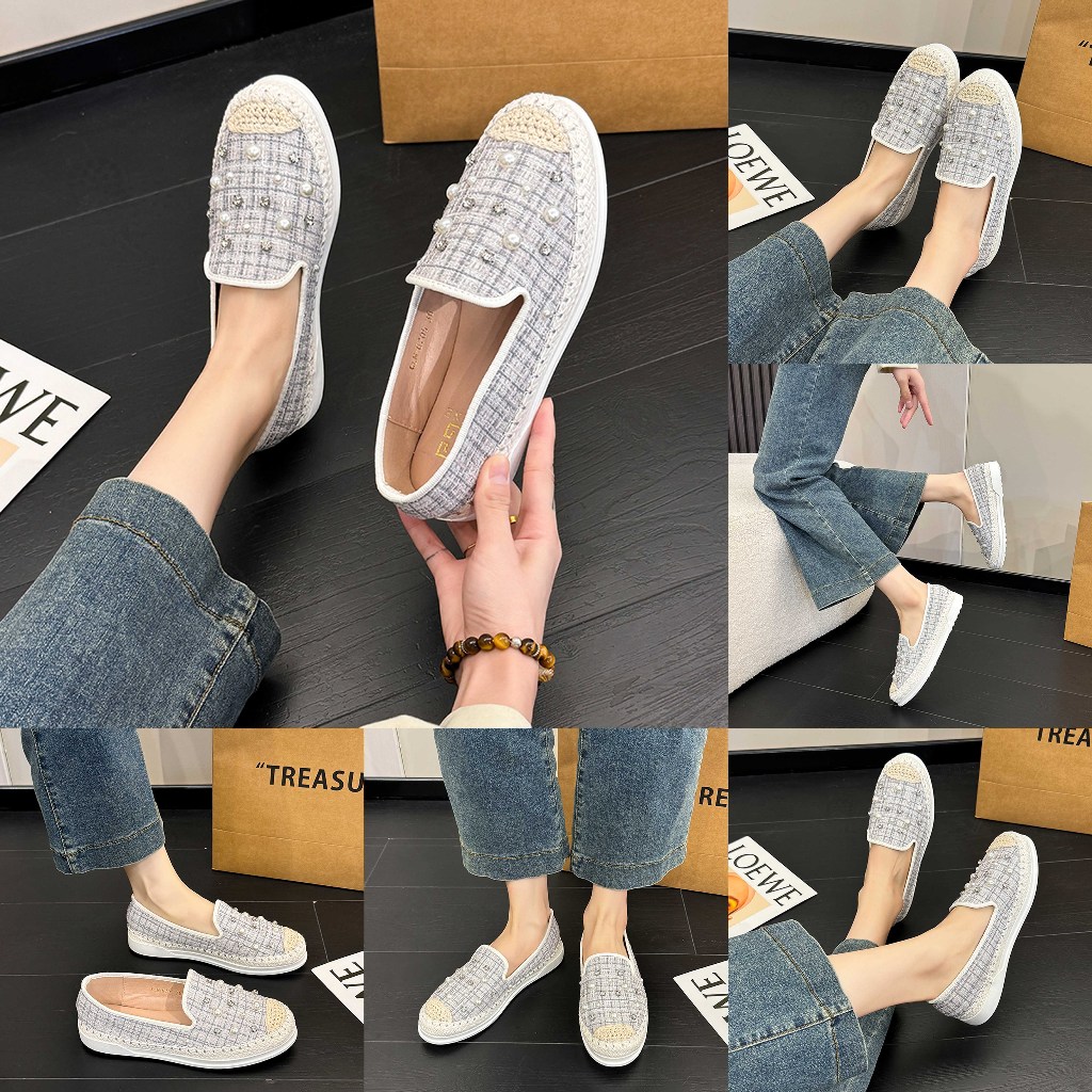 Coline Cln-6705 Flatshoes Tweed Wanita / Sepatu Wanita Slip On #C1255