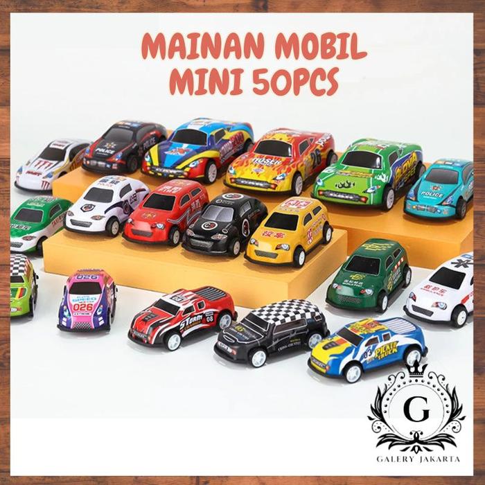 GaleryJak 50Pcs+Box Mainan Mobil Pesawat Mini PullBack Mix Collorfull Racing Car Metal Mini Cars Kids Toys - MOBIL 50PCS