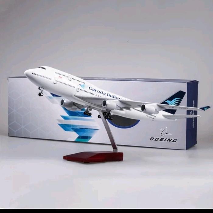 Miniatur Pesawat Garuda b747 ukuran 47 cm bahan Fiber ada roda