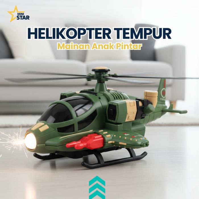 MINISTAR Pesawat Helikopter Tempur Berputar 360° Dengan Audio LED dan Sayap Terbuka Mainan Anak