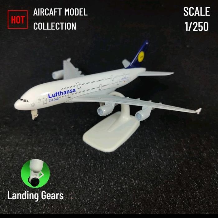 miniatur Diecast pesawat Lufthansa ada roda ada dudukan