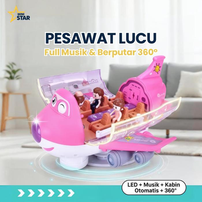 MINISTAR Mainan Edukasi Visual dan Motorik Pesawat Terbang Berputar 360° Dengan Sensor Audio dan LED Mainan Anak