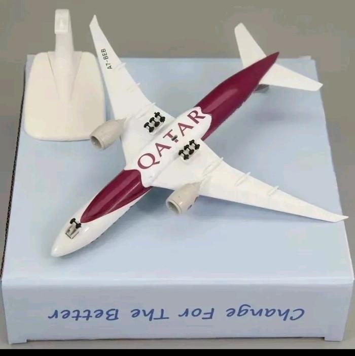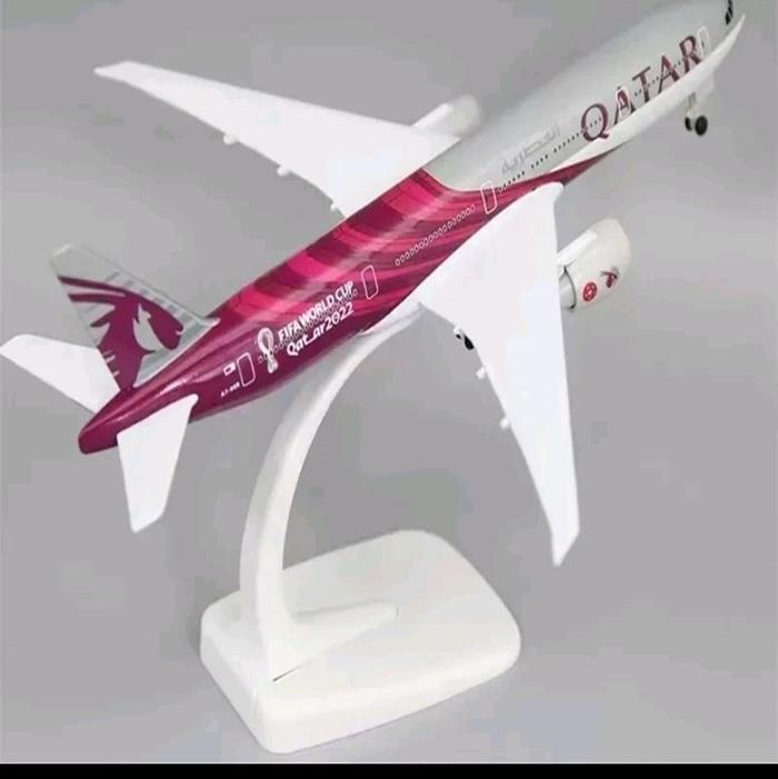 miniatur Diecast pesawat Qatar piala dunia Boeing 787 20 cm ada roda ada dudukan