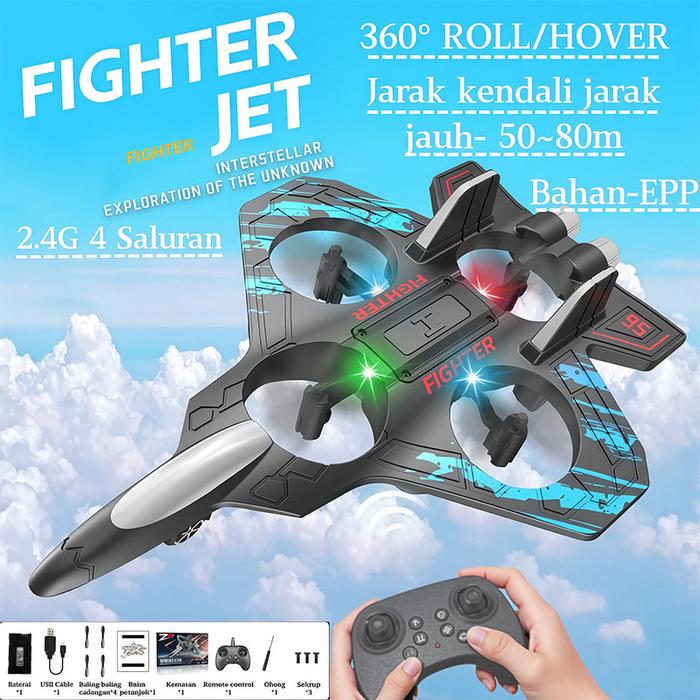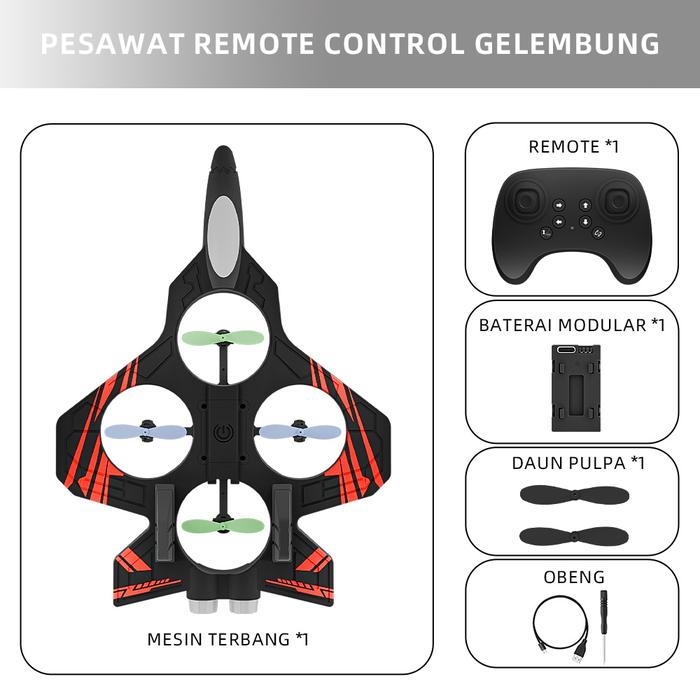 Mainan Pesawat Terbang 2.4G EPP Stunt Remote Control Led Glider Airplane Foam Rc Pesawat Terbang - Merah