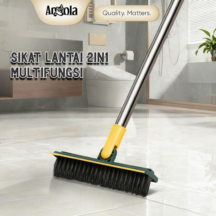 ANGOLA Sikat Dorong Lantai D12 Alat Sikat Toilet Sikat Kamar Mandi Gagang Panjang Multifungsi 2IN1 - Hijau