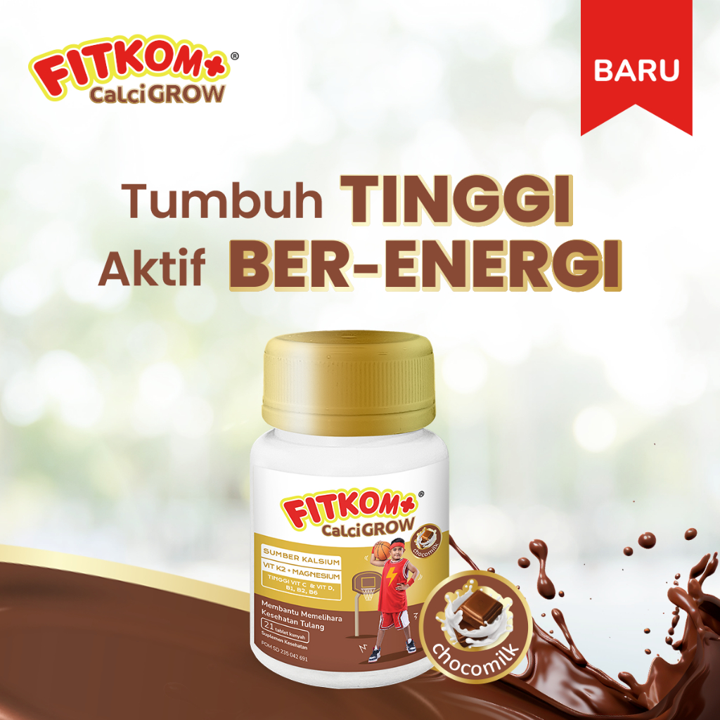 Fitkom Calcigrow Tablet Hisap Vitamin Tinggi Badan Anak Rasa Coklat
