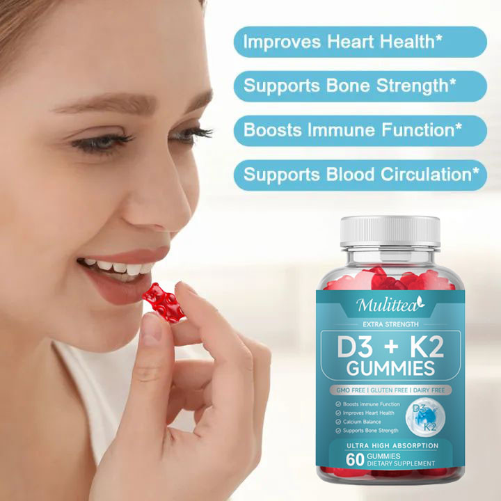 Mulittea Vitamin D3 K2 Gummies For Kids & Adults Supports Healthy Bone, Teeth, Muscle,Heart & Calcium Absorption & Immun