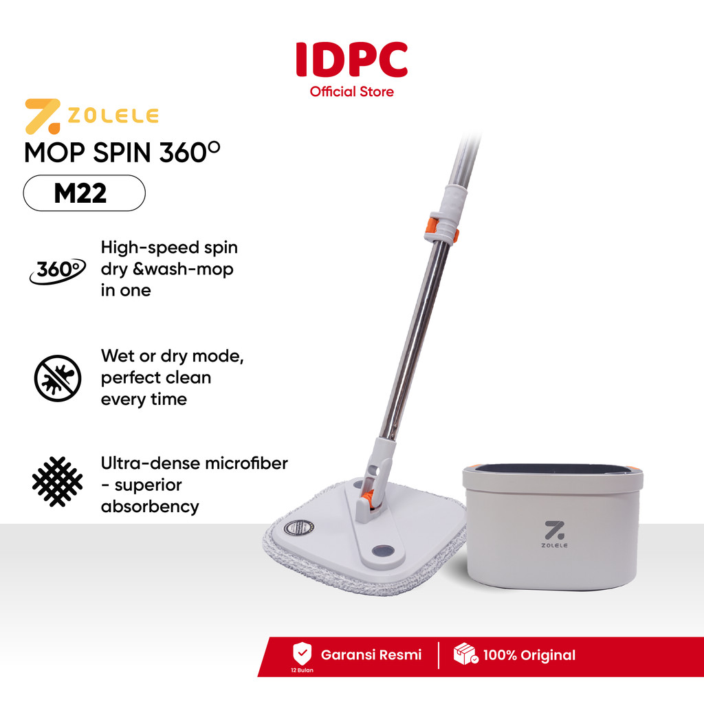ZOLELE M22 alat pel yang bisa muter Self Wash Spin Mop Flat Mop Spin 360 Spinner