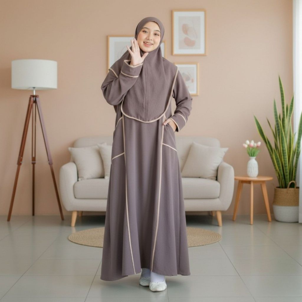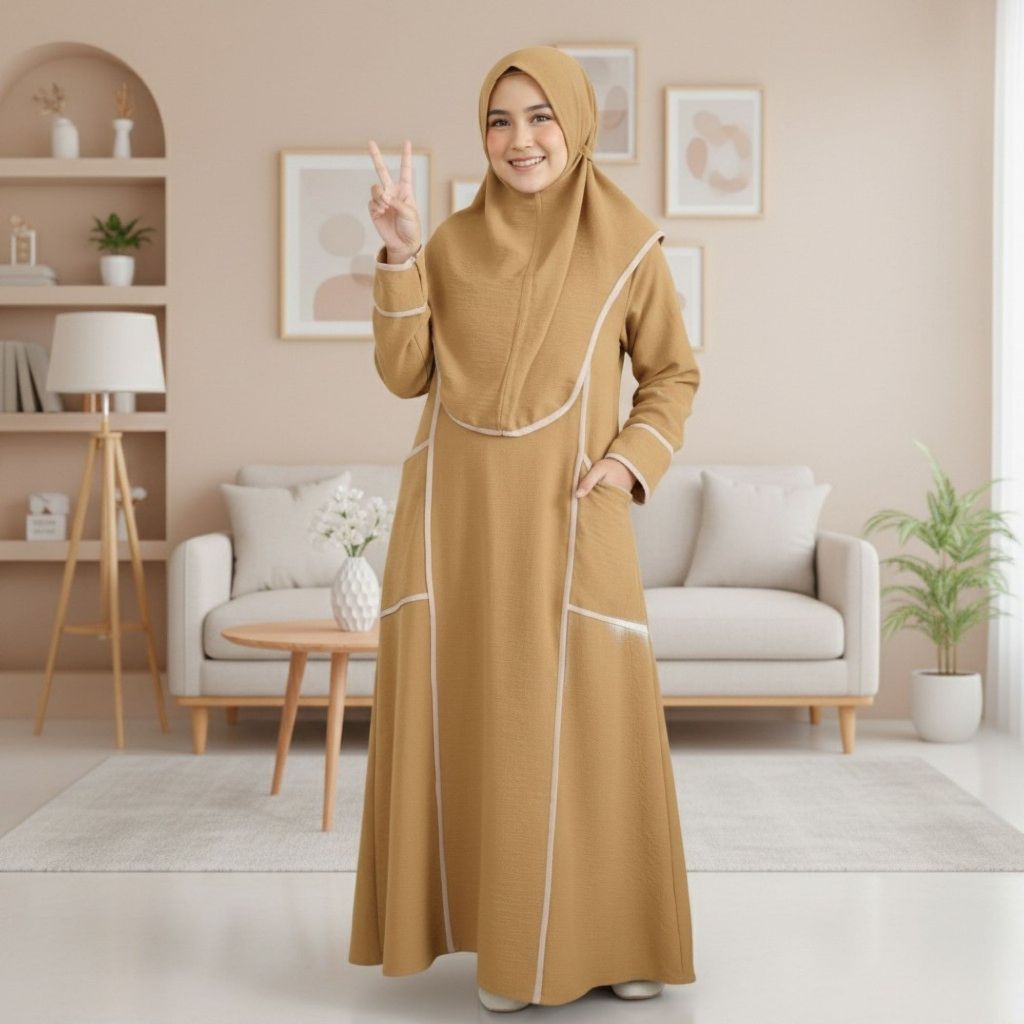 Gamis Abaya Set Hijab Syari – Bahan Adem Nyaman, Gamis Lebaran Wanita Terbaru 2025