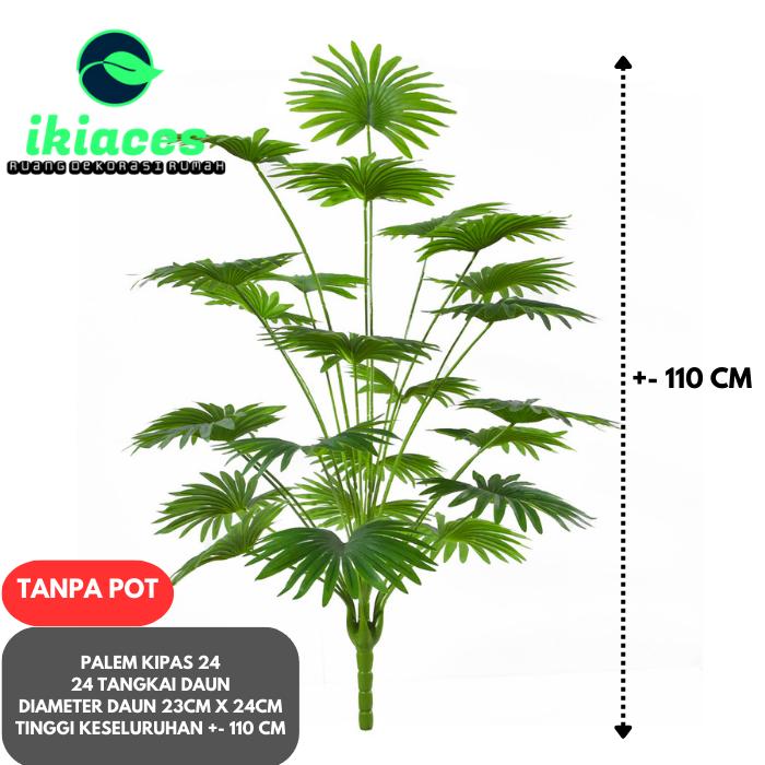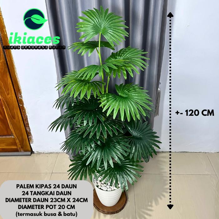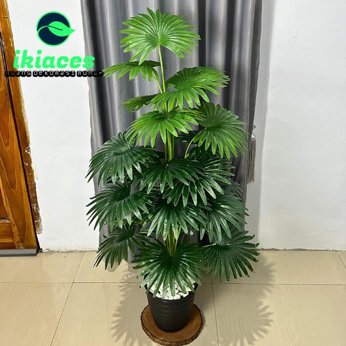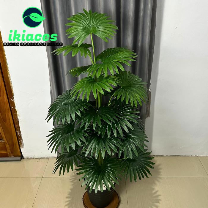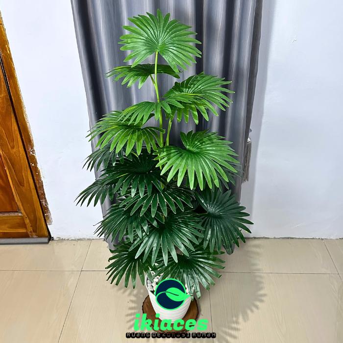 DAUN PALEM KIPAS JUMBO 1 METER DAUN PALEM ARTIFISIAL DAUN PLASTIK HIAS DEKORASI POJOKAN RUMAH BUNGA PALSU - POT PUTIH