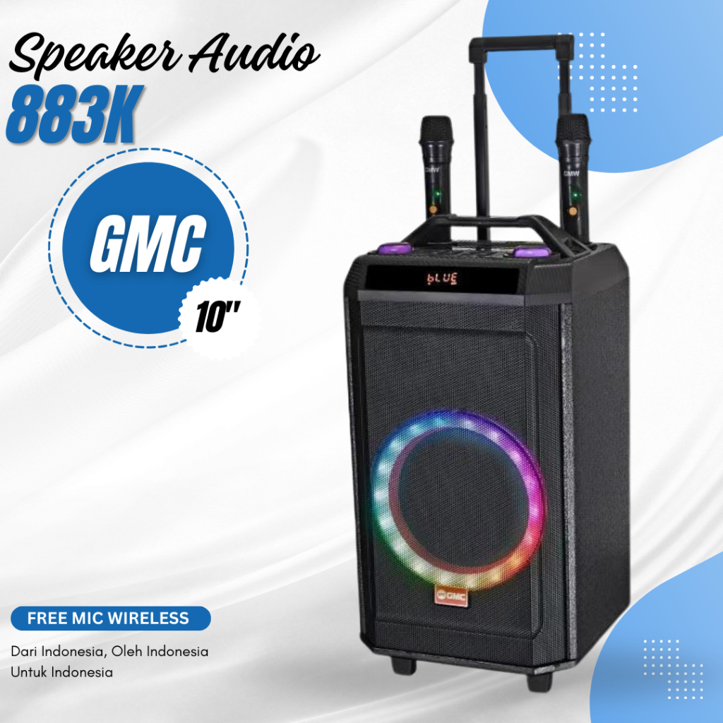 Speaker Bluetooth GMC 883K / Speaker Aktif 10" Portabel dengan Suara Super Bass free 2 MIc