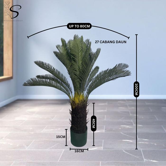 SANTOSO- POHON CYCAS HIASAN ARTIFICIAL TINGGI 100CM DEKORASI RUANGAN POHON PREMIUM / CZ-21A - CZ21A 100 CM