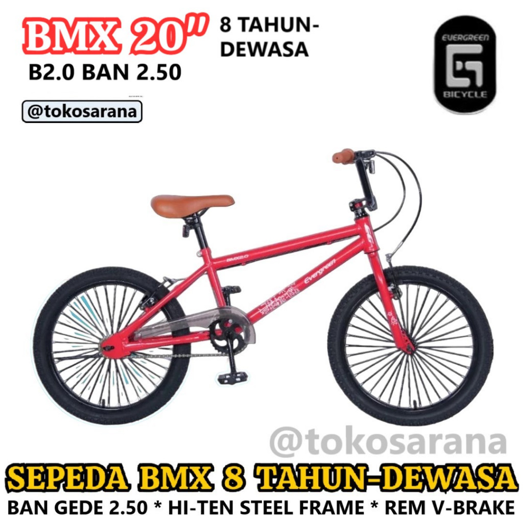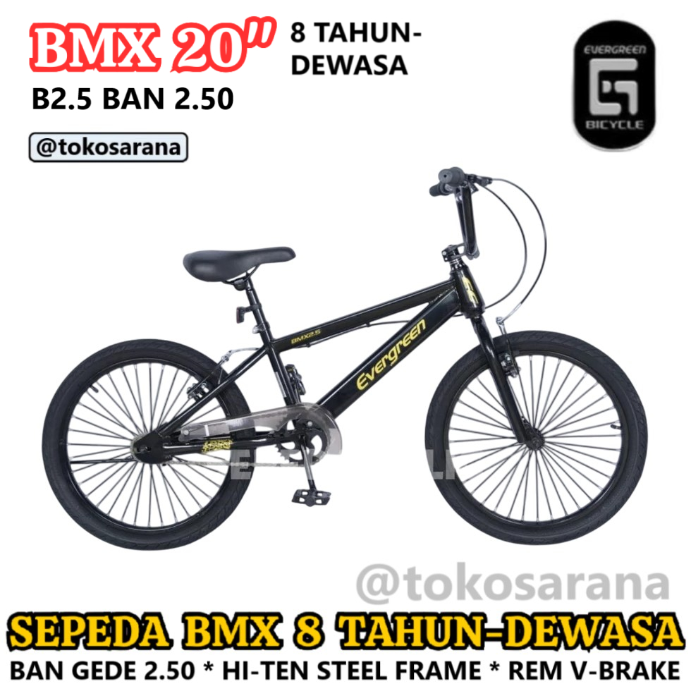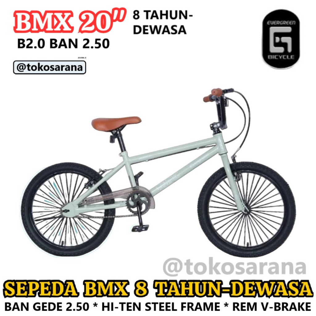 Sepeda BMX Evergreen B20 B25 Anak 8 Tahun-Dewasa 20" Rangka Steel One Piece Crank Gear Ratio 32/16