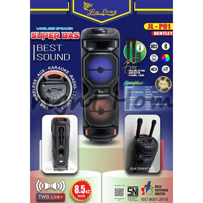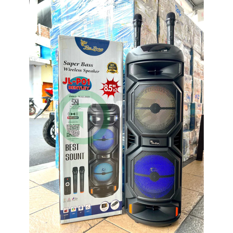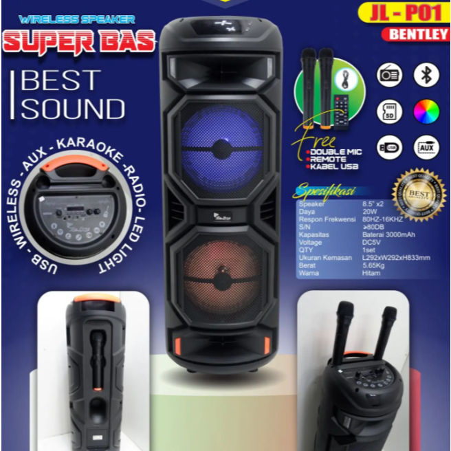 Speaker Karaoke Wireless Bentley JL-P01 Double 8.5 Inch + 2 Mic Remote – Super Bass LED
