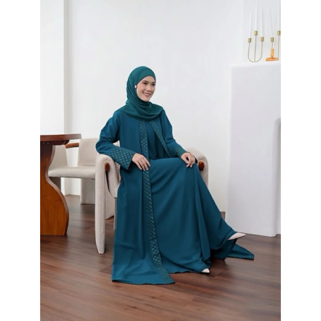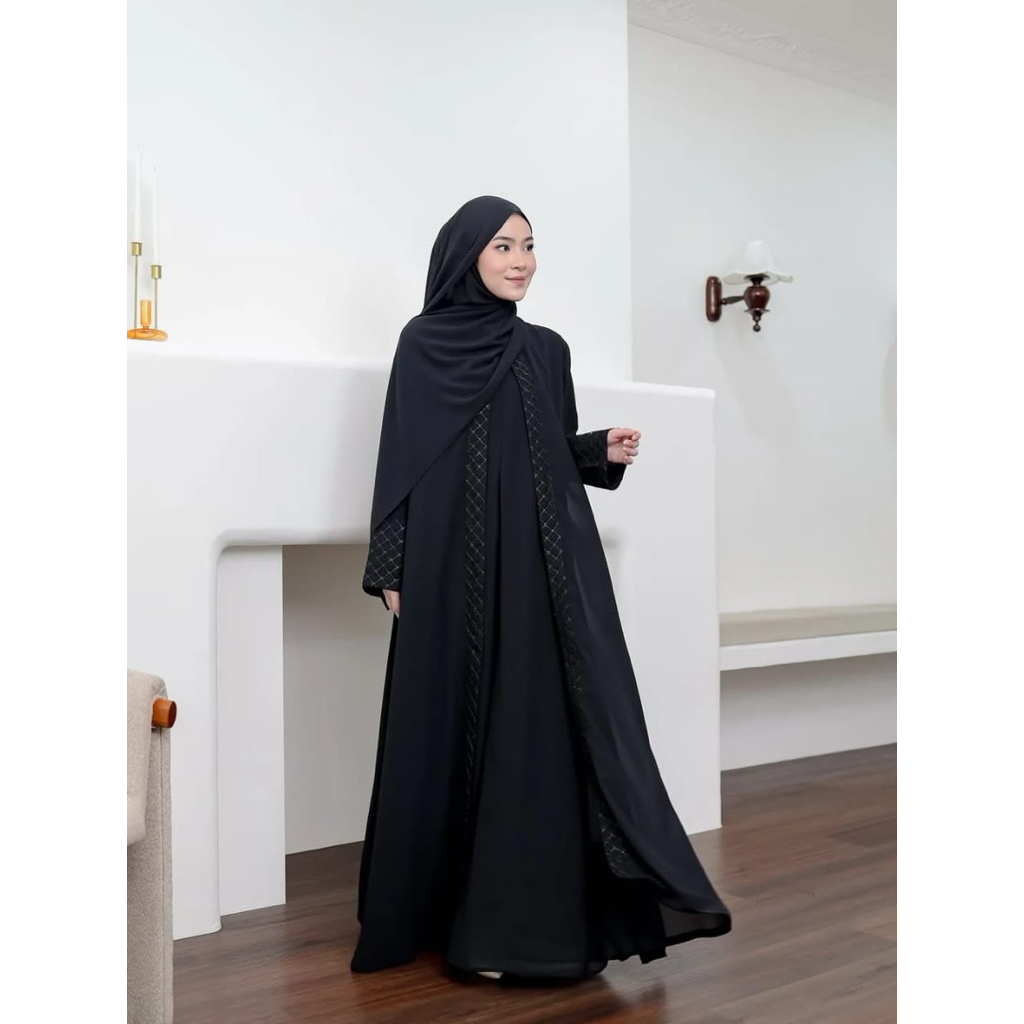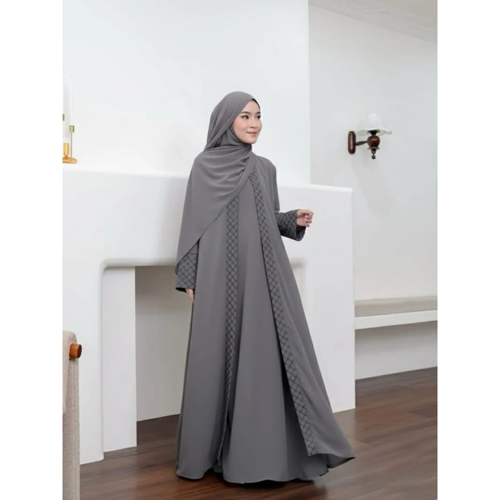 Melisa abaya Gamis Elegan Ceruty Babydoll Tille kotak Timbul Abaya Burgundy Mewah Busui Friendly Lebaran 2026