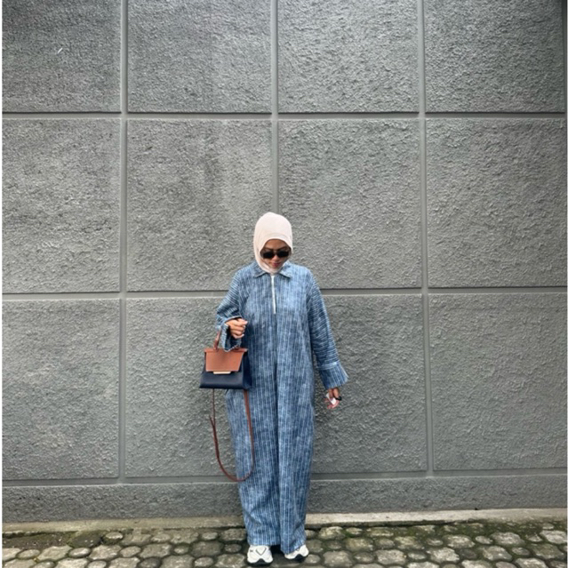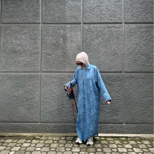 Riviera tweed casual abaya, abaya zipper kasual elegan