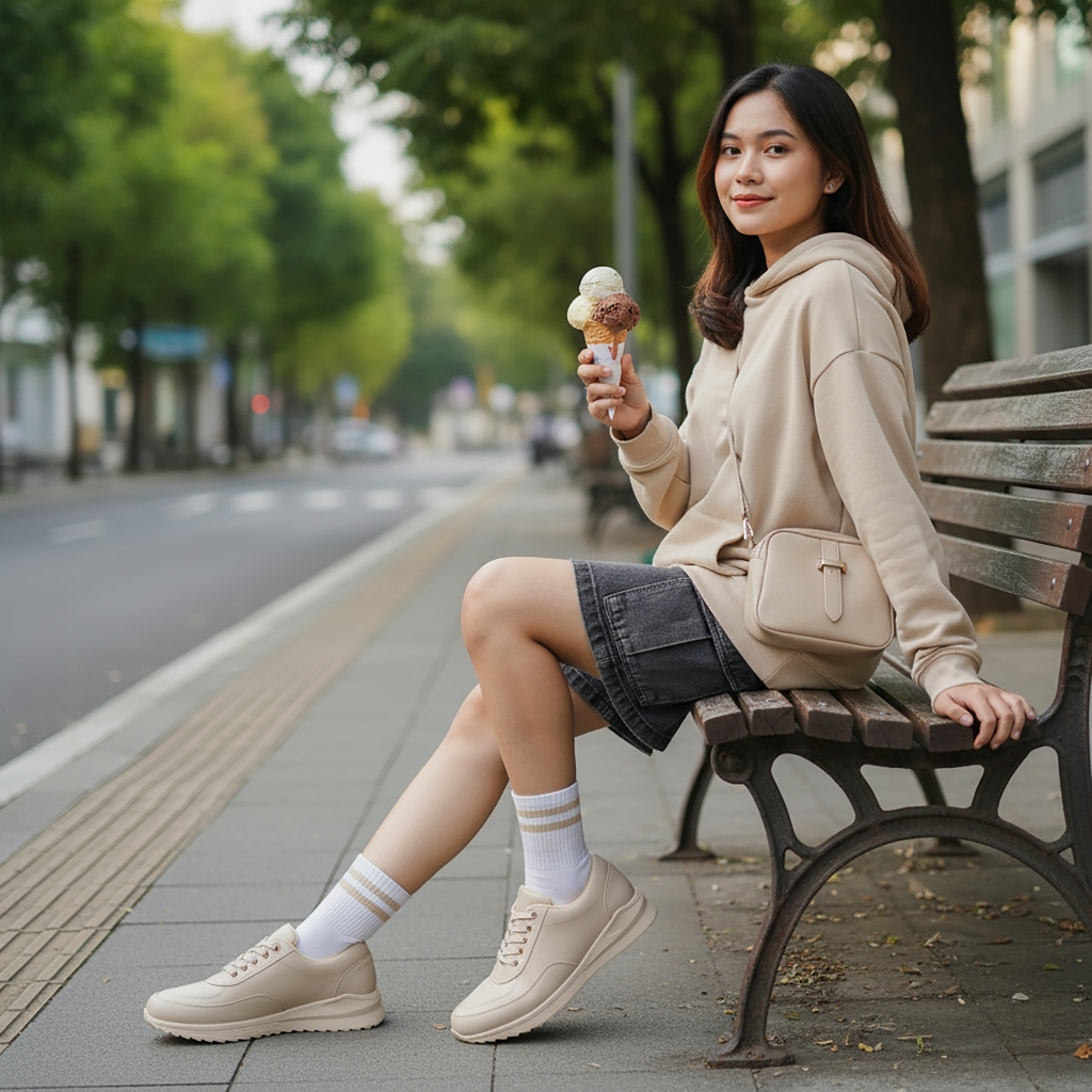 ELIRA Marta Cream Sepatu Sneakers Kasual Wanita White Black Casual Shoes Women