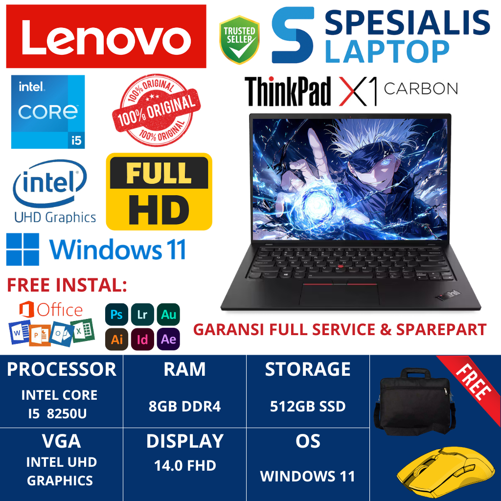 Laptop Lenovo Thinkpad X1 Carbon Intel Core I7 RAM 16GB 1TB SSD 14.0 FHD Backlit Keyboard Windows 11