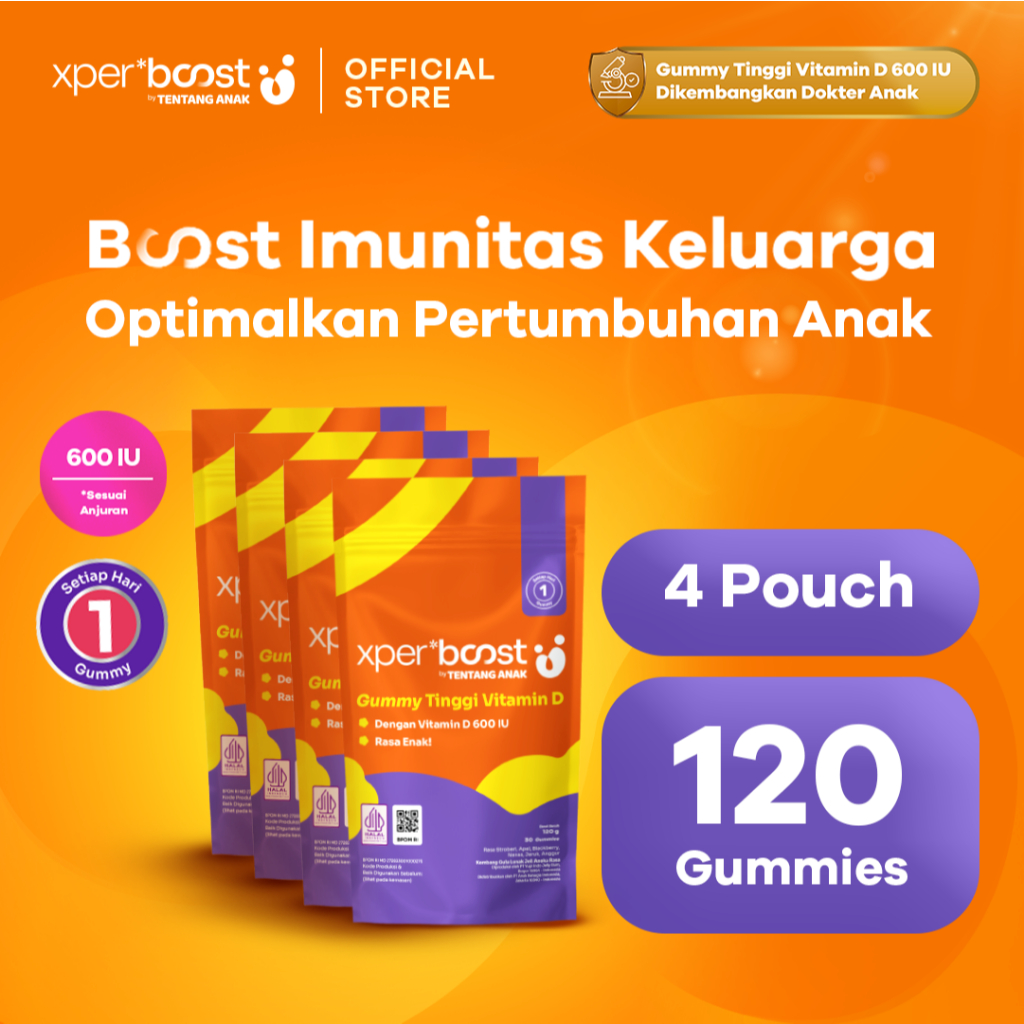 Expert Boost - Bundling 4 Pouch Gummy Vitamin D 600 Iu Anak Dan Dewasa | Paket 30 Hari | Paket 7 Hari