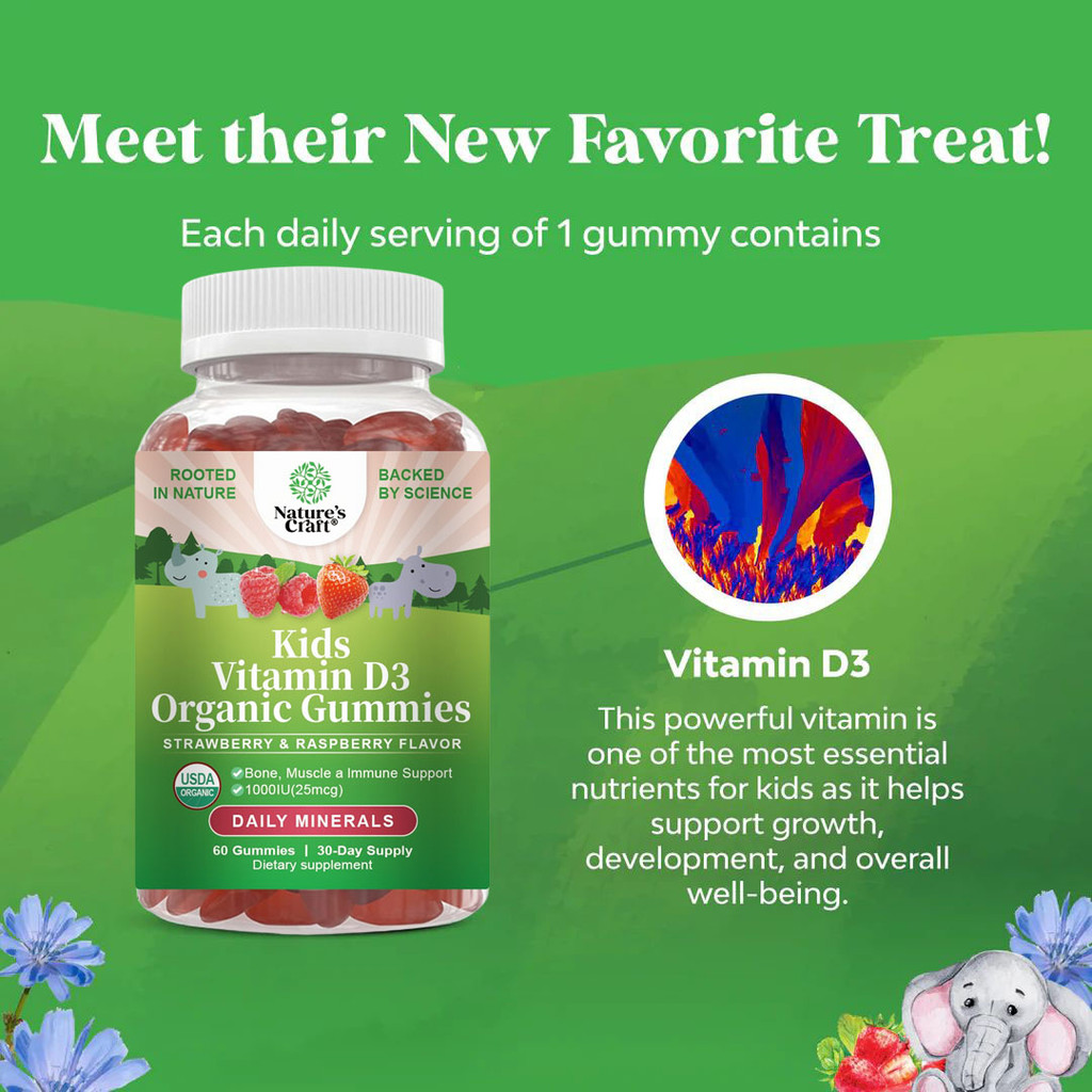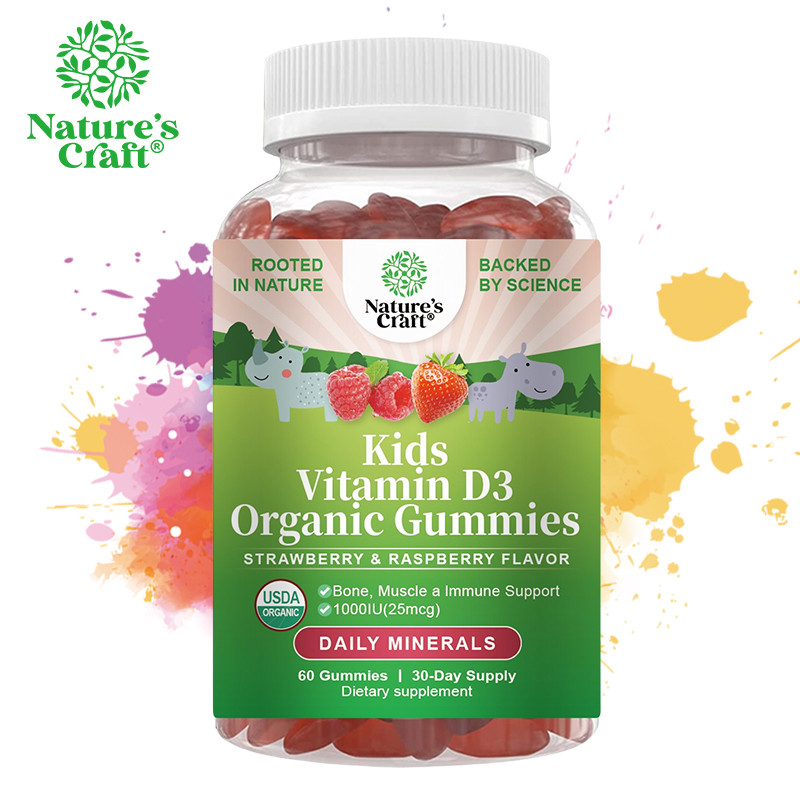 Kids Vitamin D3 Organic Gummies 1000Iu Vegan Kids Immunity Support Gummies With Vitamin D For Kids Daily Teeth Muscle &