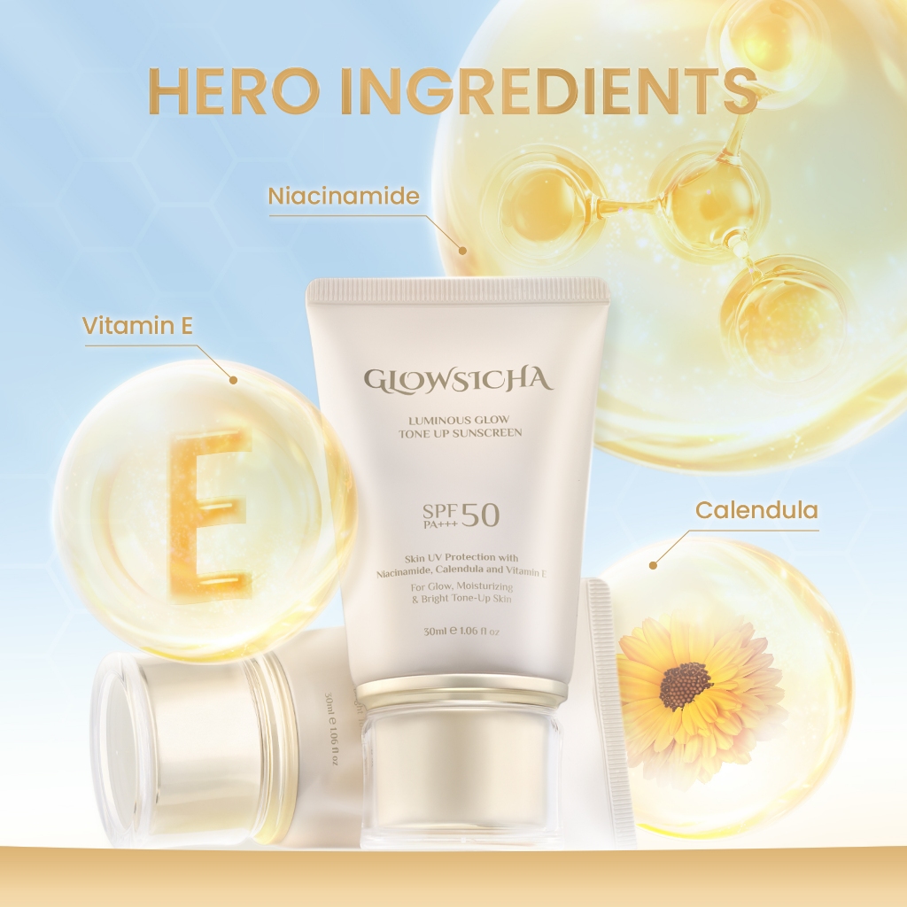 Glowsicha Bundle 2in1 Tone Up Sunscreen + Bright Day Cream - Paket Lengkap Krim Mencerahkan dan proteksi sinar UV SPF 50 PA+++