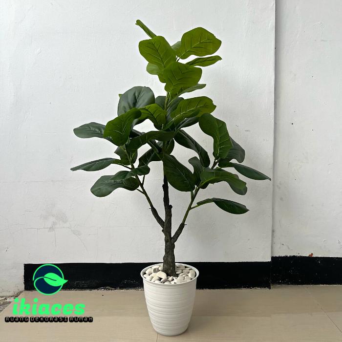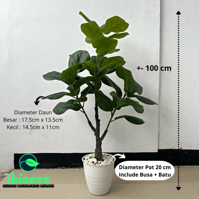 POHON KETAPANG JUMBO ARTIFICIAL PREMIUM 1 METER DAUN KETAPANG PLASTIK - POT PUTIH