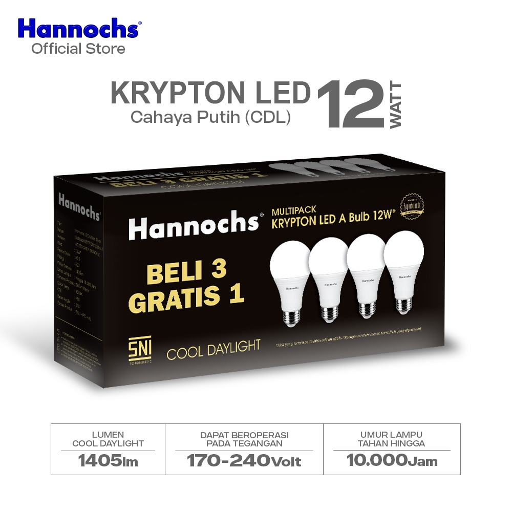 Hannochs Lampu Bohlam LED Krypton Multipack 12W Cahaya Putih Beli 3 Gratis 1