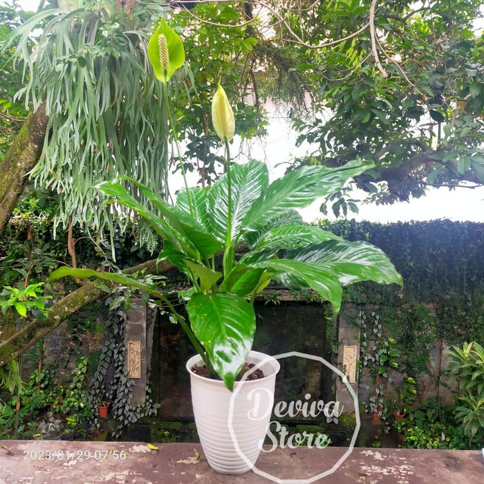 TANAMAN HIAS PEACE LILY SPATHIPHYLLUM DAUN SEHAT MENGKILAP PLUS POT