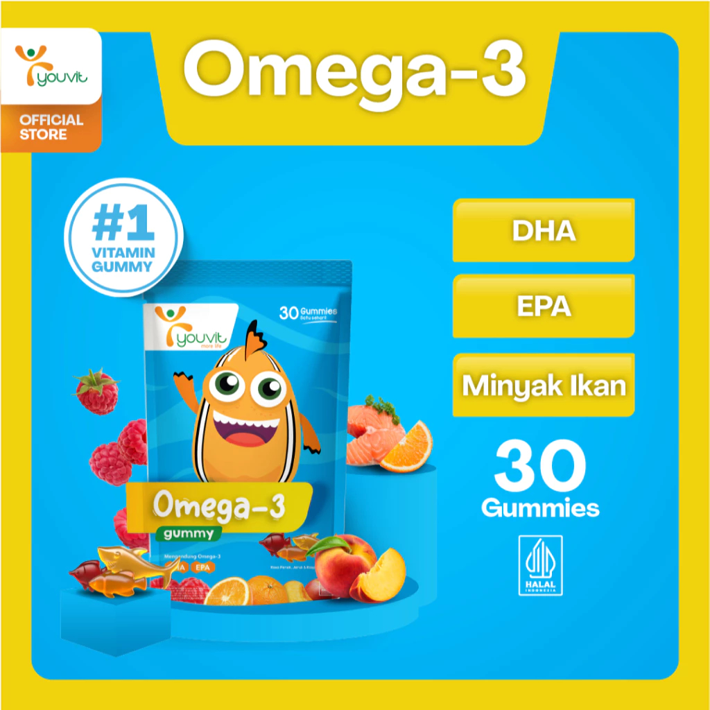 Youvit Omega 3 Anak 30 Gummy Minyak Ikan Kids Vitamin Otak & Mata Anak