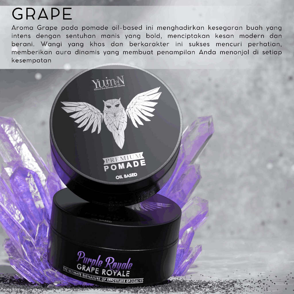 YUIMEN Pomade Oil Based Premium - Aroma Grape - Hold Medium - Gratis Sisir Saku