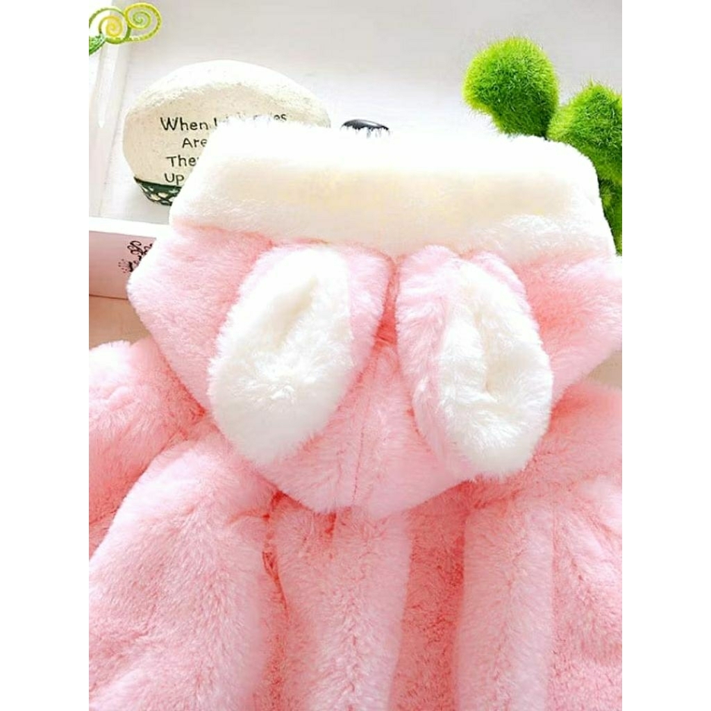 JAKET BAYI ANAK PEREMPUAN IMPORT BULU TEBAL MANTEL HOODIE BABY GIRL