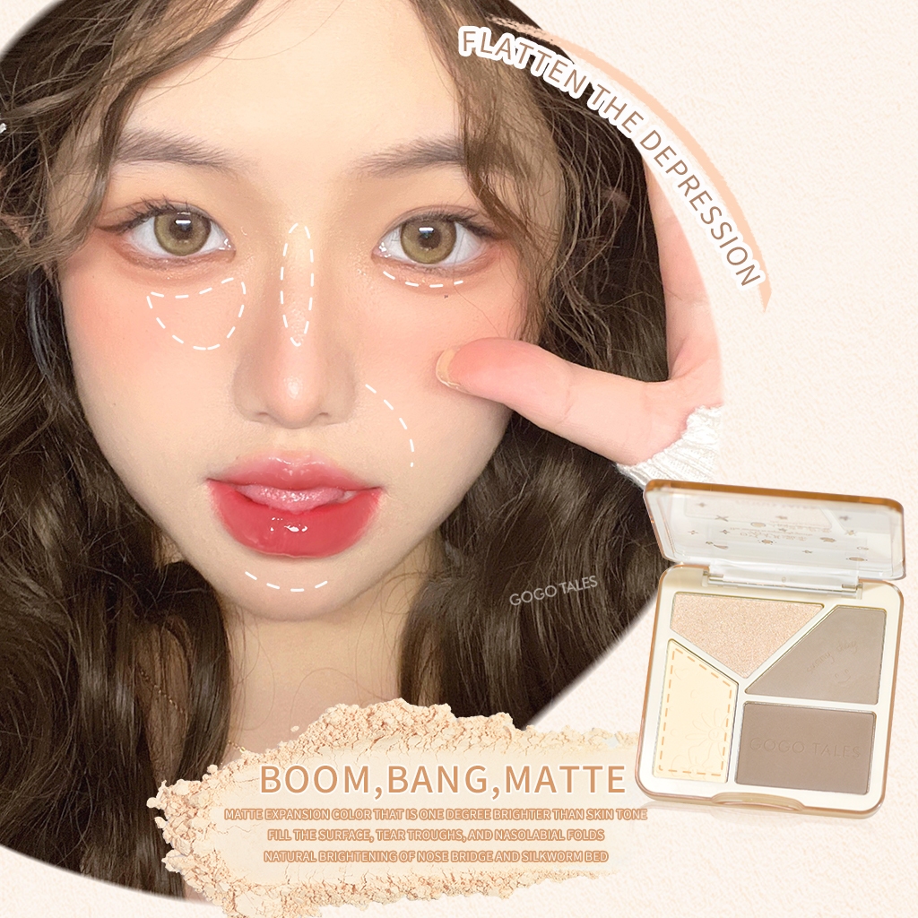 GOGO TALES contour dan highlighter palette nose shadow powder makeup wajah glowing look soft glitter silky 3D face matte shimmer finish cosmetic GT431