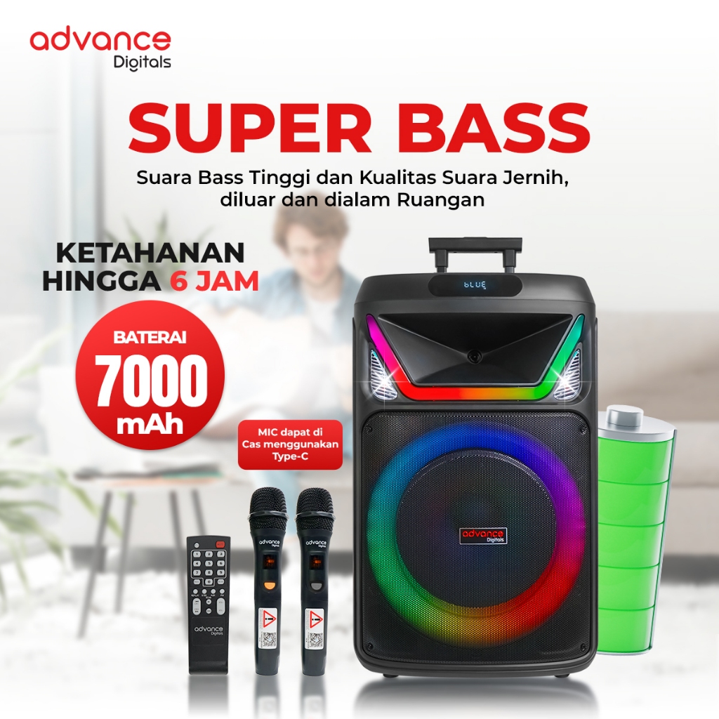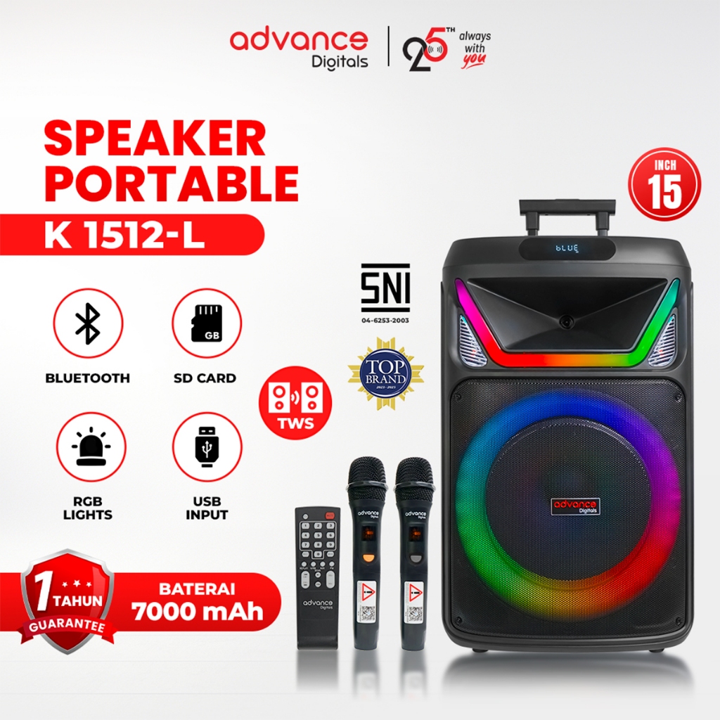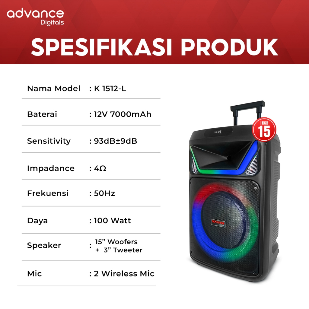 Advance K1512L Speaker Party Full Bass Speaker 15 inch Free 2 mic Wireless Garansi 1 Tahun