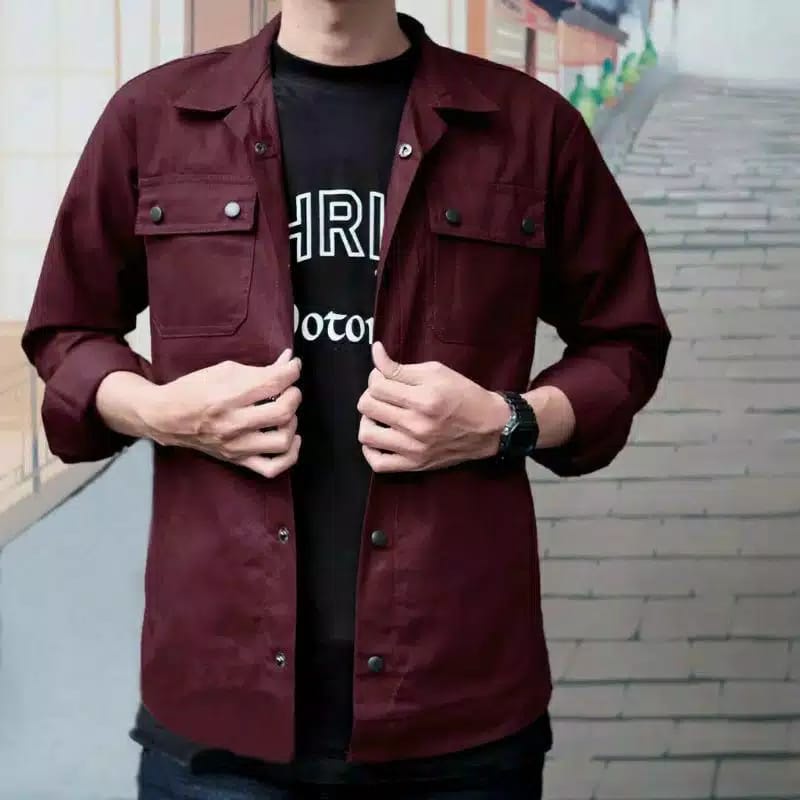 Jaket Semi parka Pria Wanita Kancing Hitam Jaket Trucker Pria Canvas Parka Full Size