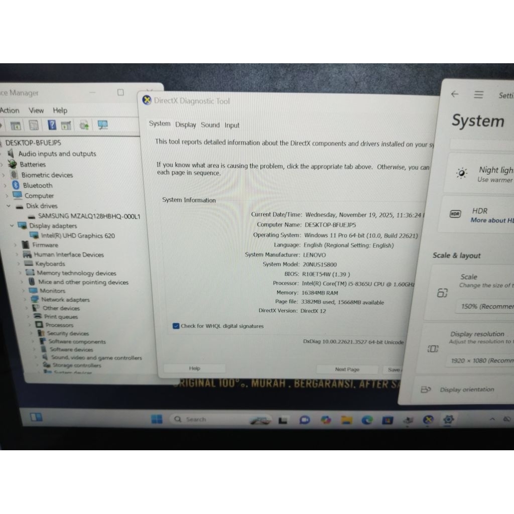 THINKPAD YOGA L390 i5-8365U GEN 8 TOUCH / 16GB RAM / 512GB SSD M.2 /