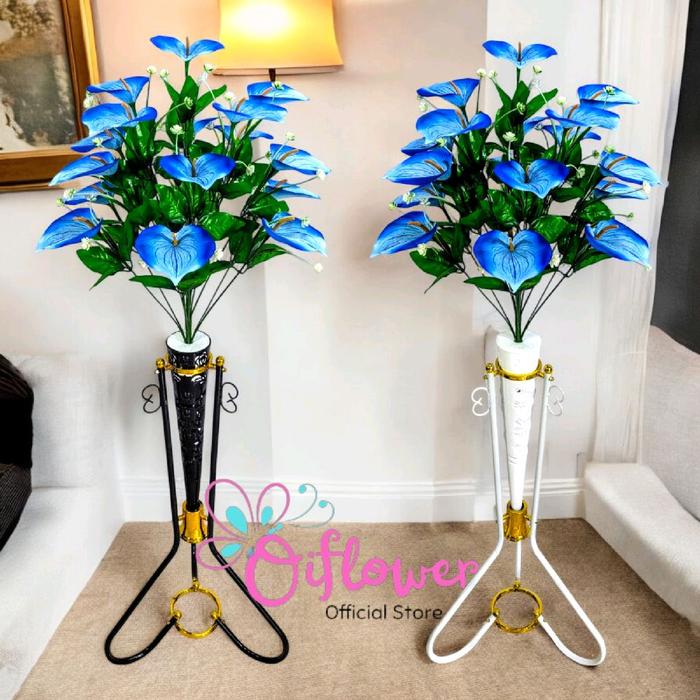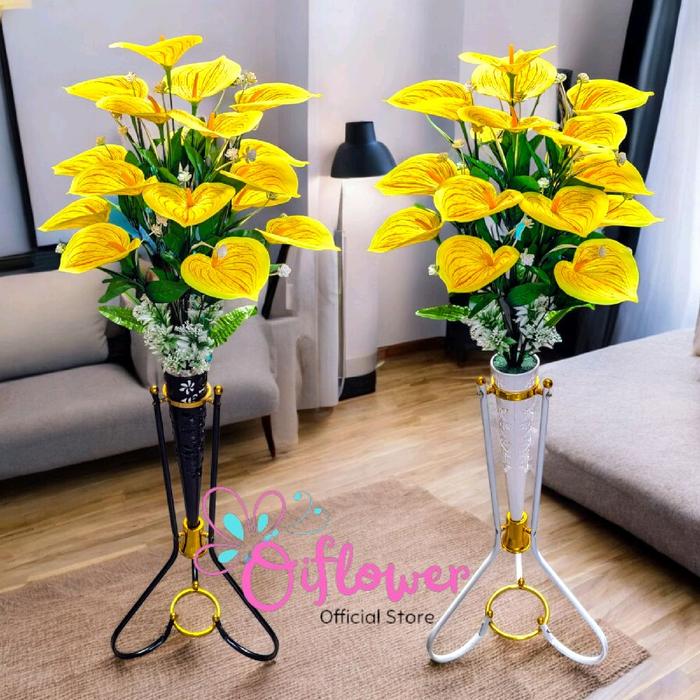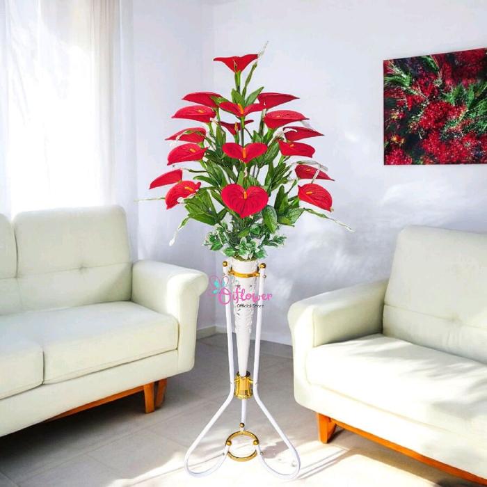 BUNGA HIAS ANTHURIUM LILY SATU SET LENGKAP DENGAN VAS/POT STANDING BLBESI CORONG PLASTIK HIASAN SUDUT RUANGAN - MERAH,