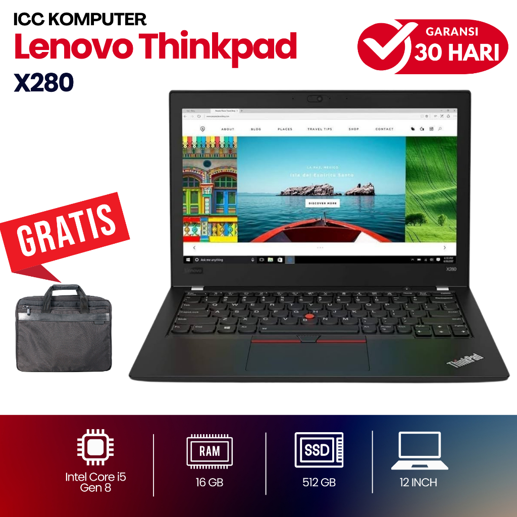 Lenovo Thinkpad x280 Core i5 Gen 8 Ram 16GB SSD 512GB - Laptop 12" Slim - Second Murah Bergaransi