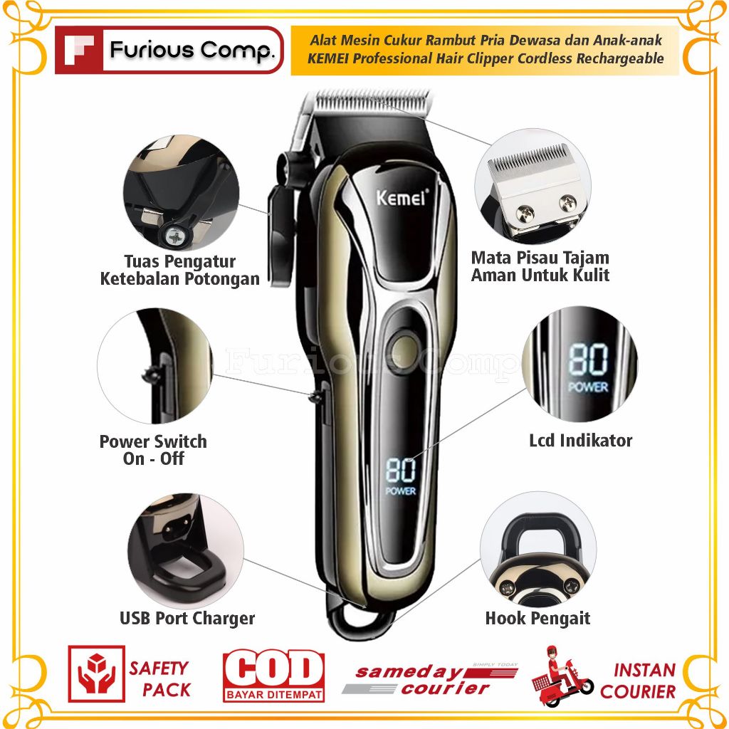 Alat Mesin Cukur Rambut Dewasa dan Anak-anak KEMEI Professional Hair Clipper Cordless Rechargeable