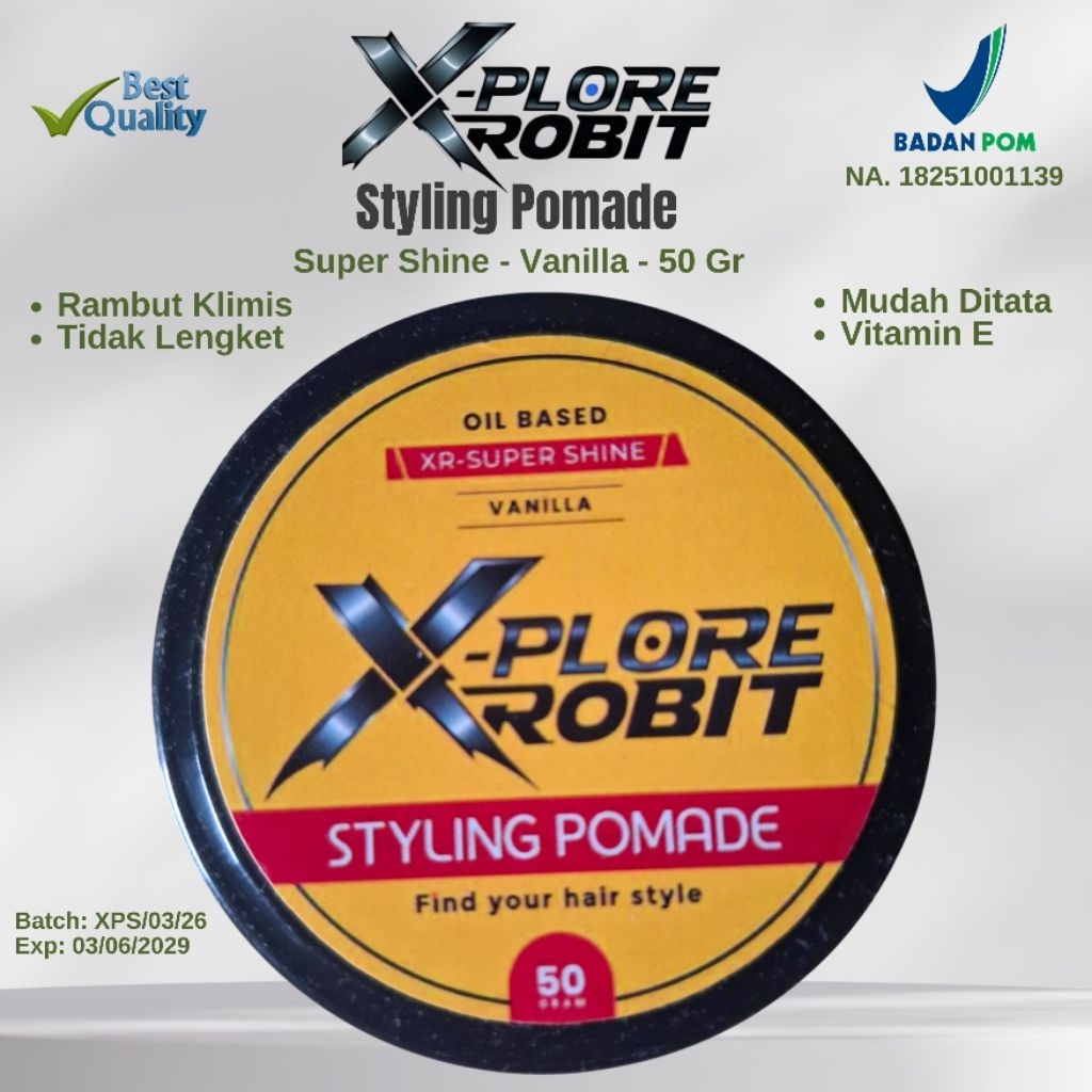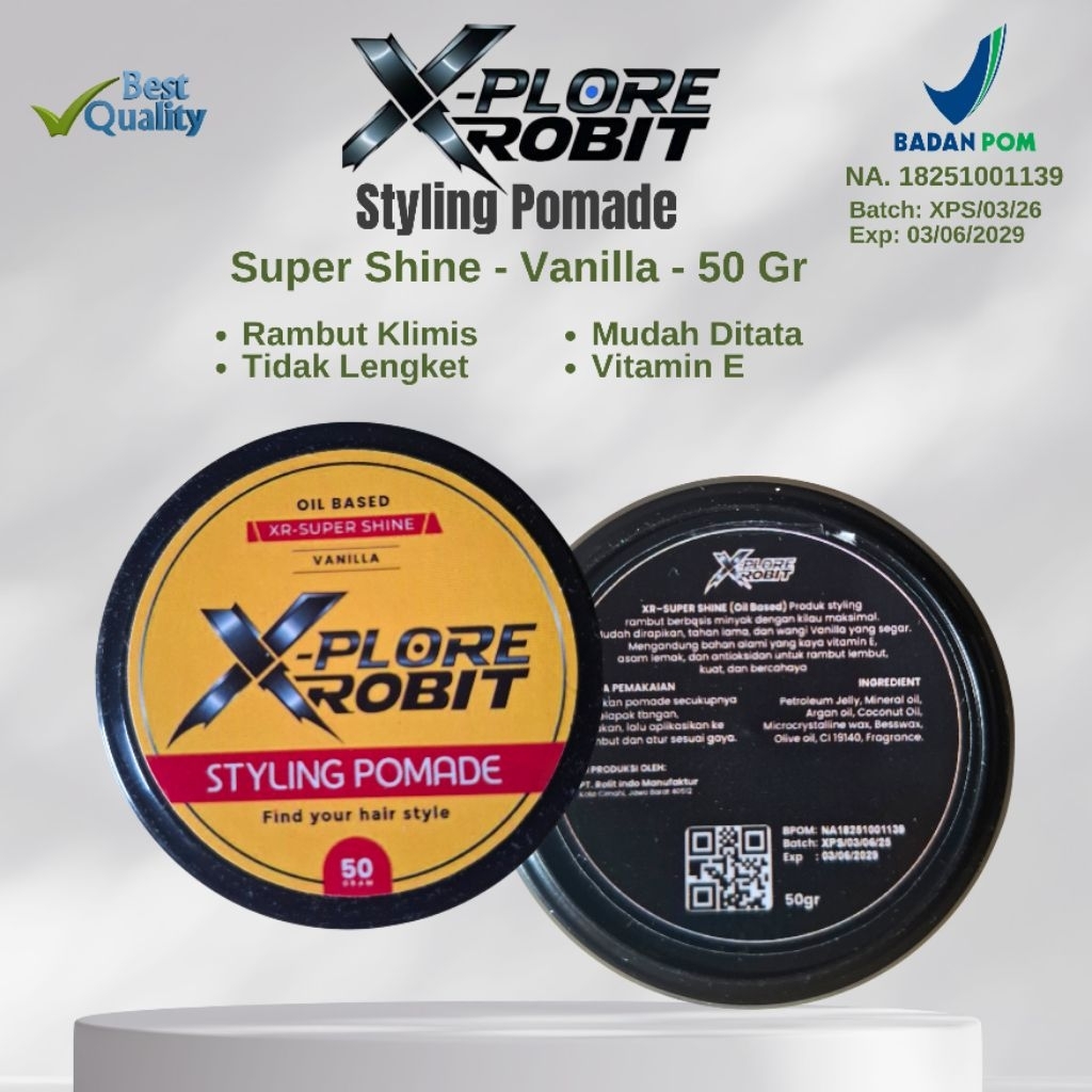 Pomade Oil Based X-Plore Robit Super Shine & Medium 50gr – Terdaftar BPOM | Rambut Rapi, Kilau & Wangi Seharian