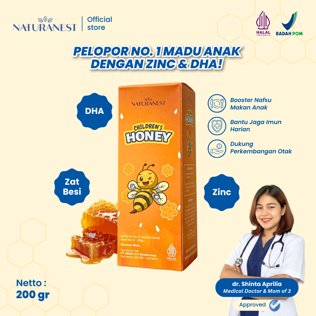 Naturanest Childrens Honey 200Gr - Madu Multivitamin Penambah Nafsu Makan Anak Paket 1 Botol