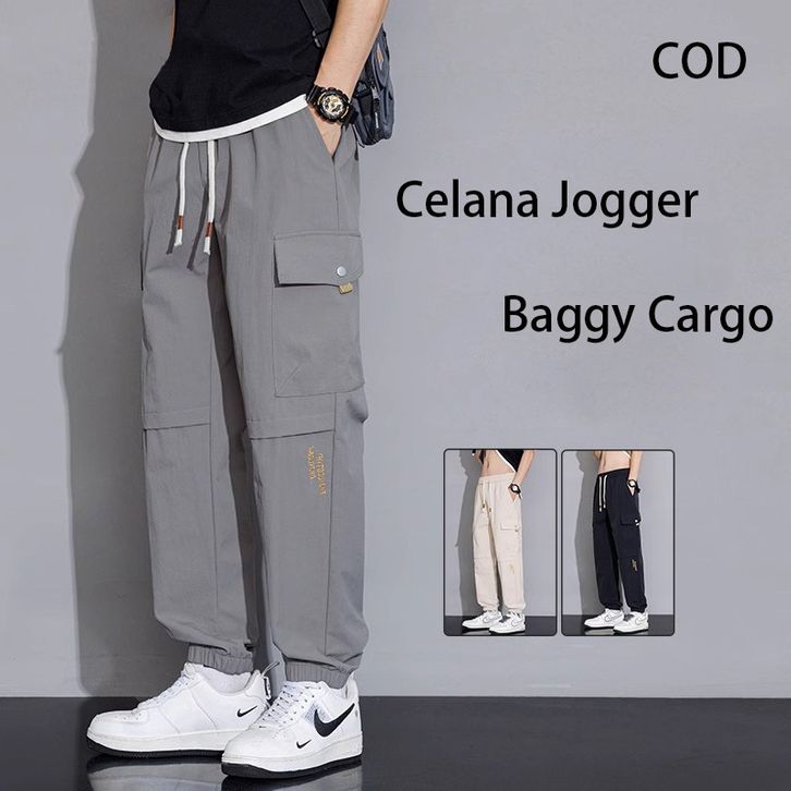 Celana Cargo Joger Pria Wanita Panjang Gombrong Jumbo Anak Laki Laki Pendek Original Baggy Korean Style Casual Pants