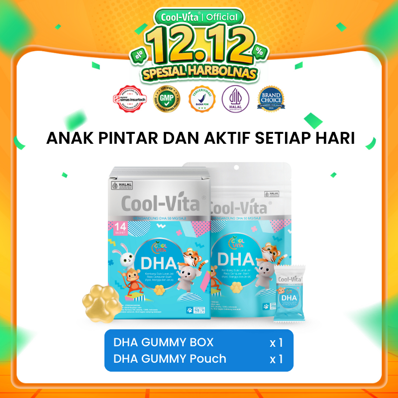 Coolvita 1 Box 1 Pouch Dha Gummy Rasa Apel, Mangga, Dan Jeruk | Untuk Si Kecil Yang Aktif | Suplemen Kesehatan Otak [Bes
